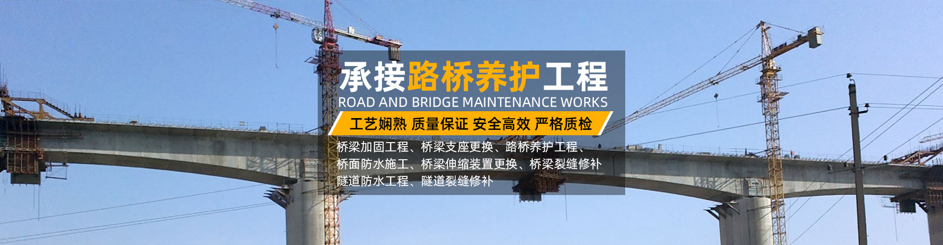 承接路桥养护工程、桥梁加固工程、支座更换、裂缝修补、伸缩缝更换、桥梁顶升工程